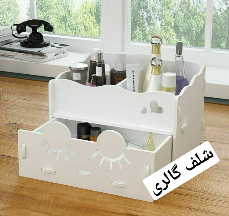باکس لوازم آرایش،جای لوازم آرایش پی وی سی،استند لوازم آرایش طرح چشمک،استند پی وی سی،استند کشو دار ،شلف کشودار،شلف طرح چشمک