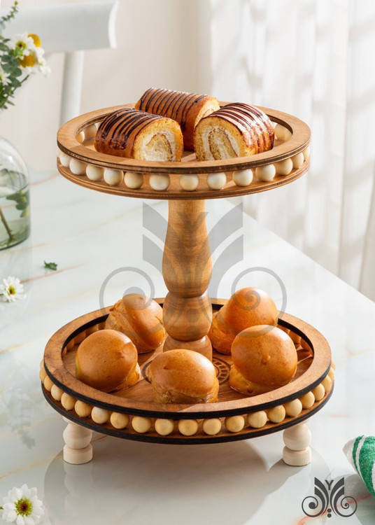 رایزر دو طبقه مهره دار،رایزر چوبی،استند مهره دار،میوه خوری چوبی،شیرینی خوری چوبی،رایزر مهره دار