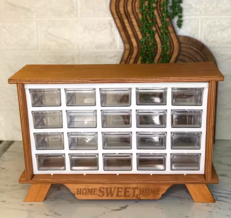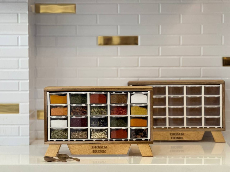 جا ادویه 20 کشویی چوبی،جاادویه کشویی،جا ادویه 15 کشو چوبی