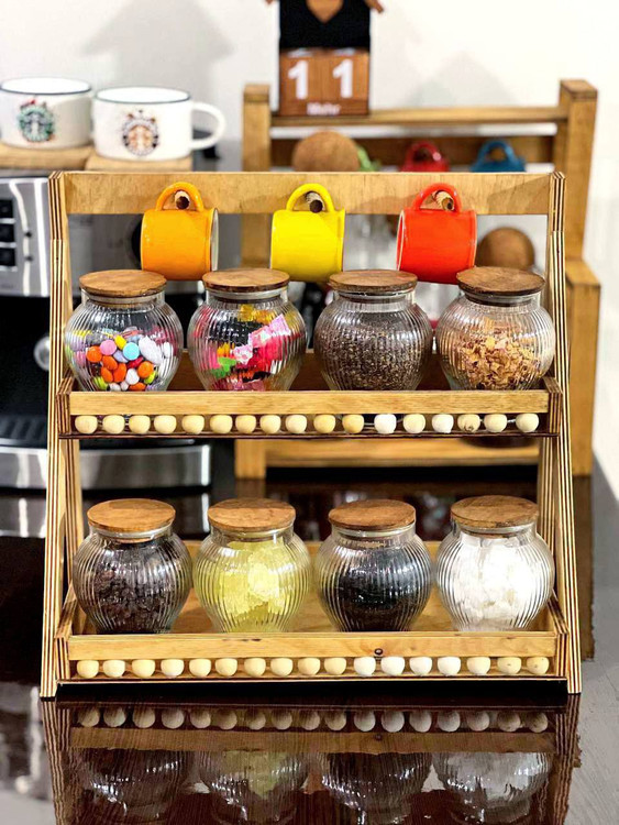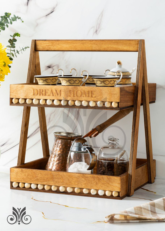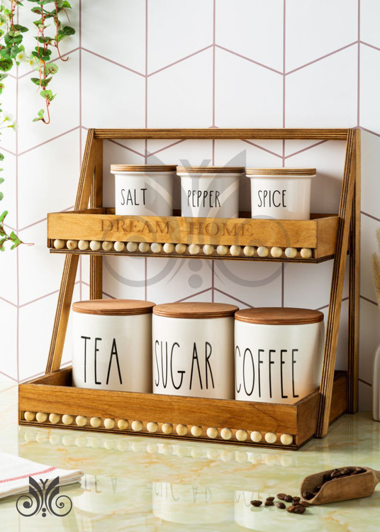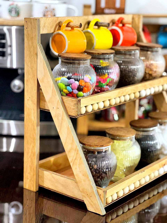 استند دوطبقه مهره دار چوبی،استند دو طبقه،استند جا ادویه،استند جای حبوبات،استند پاسماوری چوبی
