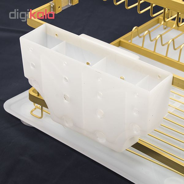 این محصول دارای نیم طبقه اضافه می باشد به دلیل کیفیت بالای محصول به نام یونیک ثبت شده در ایران وگرنه پیشتاز کاوه یا مدل هدیه هستن و... هست .علاوه بر اینکه فضای بیشتری را در اختیار شما قرار می دهد ، ظاهر زیبایی نیز به آشپزخانه شما میبخشد .در ضمن سینی پلاستیکی کف محصول دارای شیب قابل تنظیم بوده که با توجه به جهت ظرفشویی شما تنظیم می شود. این کالا دارای جا لیوانی های بسیار کابردی با قابلیت تنظیم با توجه به اندازه لیوان شما است. همچنین دارای 2 راه آب از جلو و بغل جا ظرفی می باشد که بر اساس نحوه قرار گیری قابل انتخاب است. این محصول دارای جاقاشقی بزرگ با 4 قسمت مجزا میباشد.