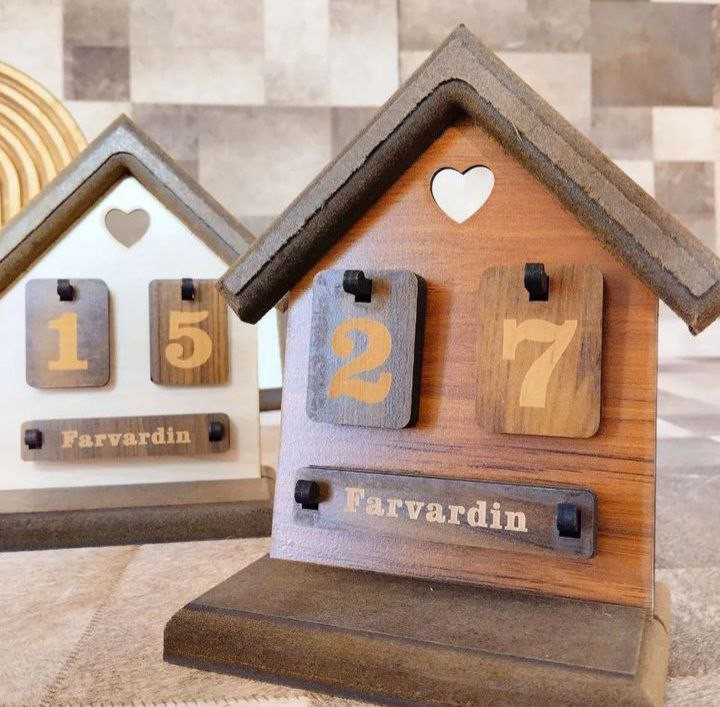 تقویم چوبی طرح کلبه،تقویم چوبی کلبه
