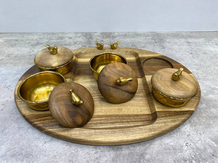 سینی مزه طرح گنجشک مدل 1980چوبی کاسه دار