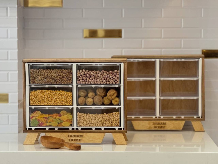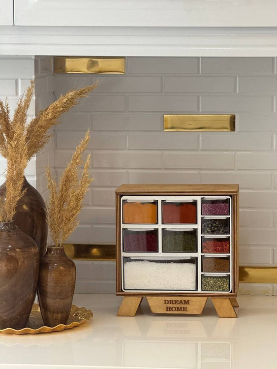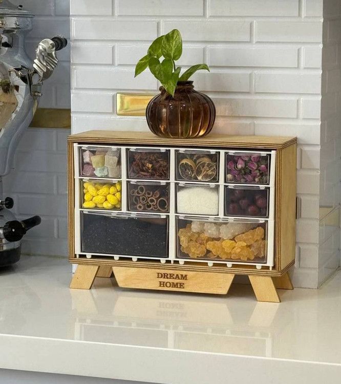 جاحبوباتی 6 کشو دریم هوم چوبی،جا ادویه و جا حبوبات 10 کشو دریم هوم چوبی،جا حبوبات،جاادویه