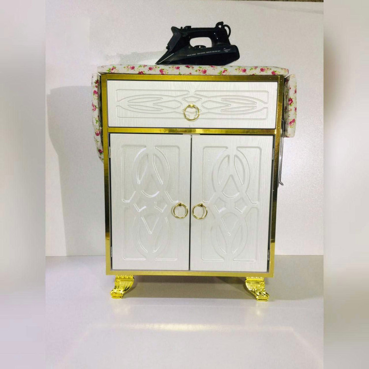 میز اتو چوبی ام دی اف مدل کمد دار پایه طلایی