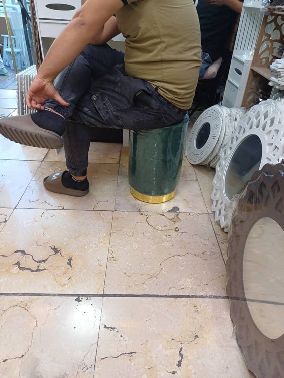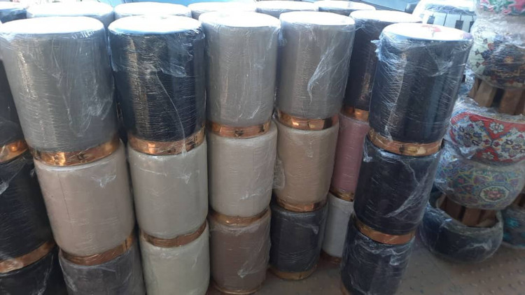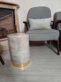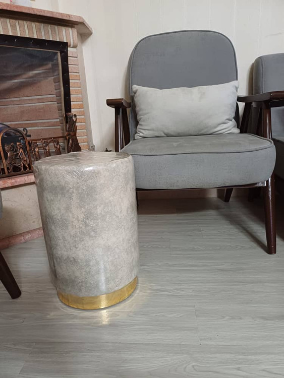 پاف استوانه ارتفاع 48سانت قطر نشیمن. ۳۲سانت با نوار طلایی رنگ بندی طوسی،کرم،نسکافه ایی،سورمه ای