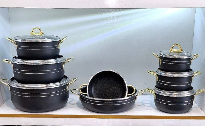 سرویس قابلمه ۱۴ پارچه طرح چدن دسته طلایی اقتصادی