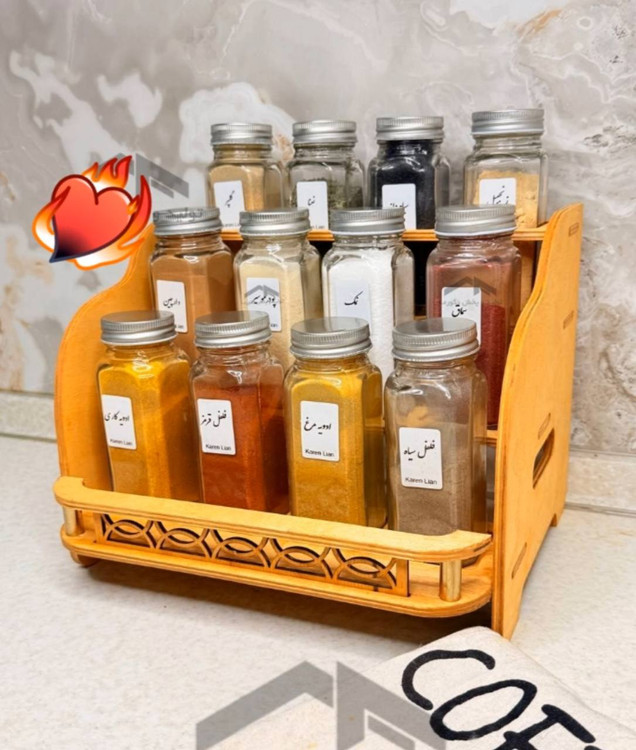 استند مکارتی سه طبقه به همراه درپوش پلاستیکی ادویه پاش،جاادویه،مکارتی