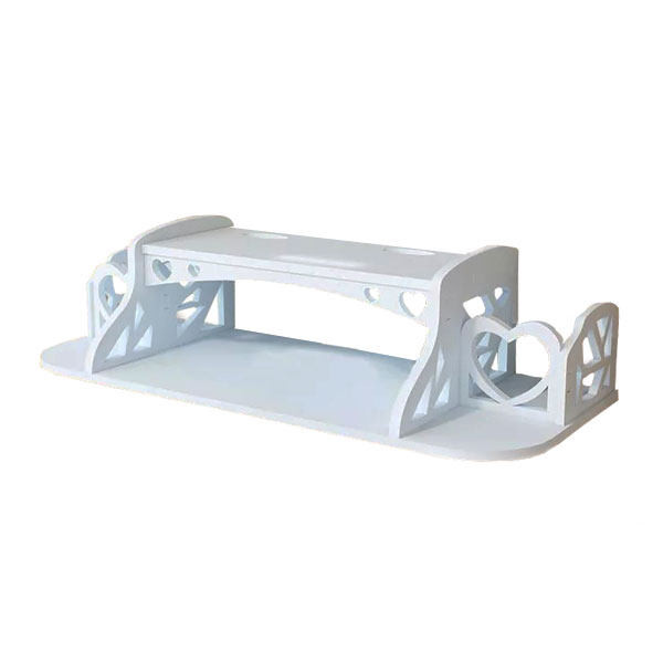 شلف دیواری زیر تلویزیونی طرح قلب ، دارای چهار فضای مجزا می باشد . محفظه اصلی مناسب برای قرار گرفتن دستگاه دی وی دی ، گیرنده دیجیتال و ... طراحی شده ، بر روی این محفظه می توانید وسایل تزئینی و یا حتی دستگاه های کوچکی نظیر مودم را جای دهید ، در دو طرف محفظه اصلی نیز محفظه های کوچکی قرار داده شده که از آنها می توانید برای نگهداری کنترل دستگاه ها و یا حتی وسایل تزئینی سبک و فانتزی استفاده کنید . این محصول از جنس PVC با کیفیت بسیار بالایی تولید شده که در برابر آب و رطوبت کاملاً مقاوم است . بنابراین به سادگی می توانید آن را تمیز و یا حتی در صورت نیاز بشویید . استفاده از این شلف ، زیبایی و جذابیتی خاصی را در محیط منزل شما به وجود می آورد.