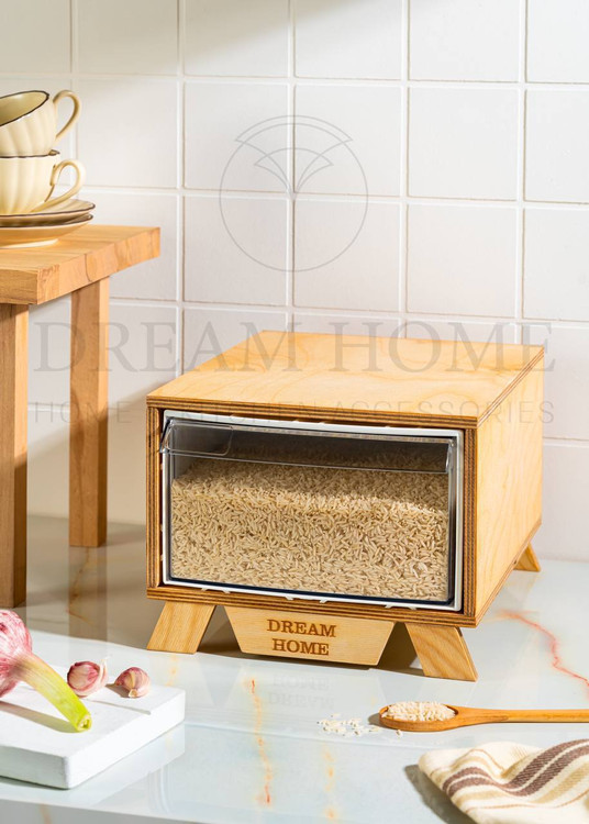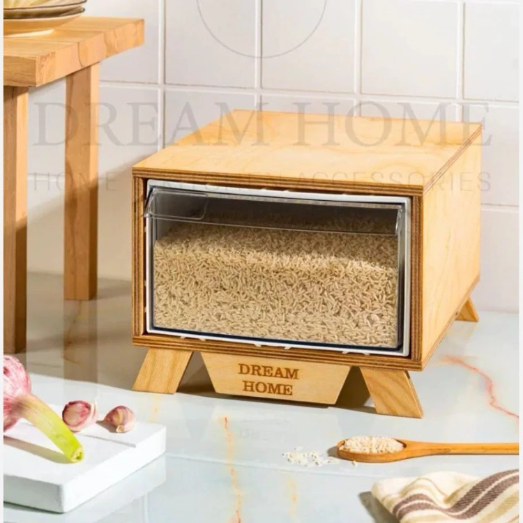 مگازین تک خانه بهترین وسیله کشویی برای نگهداری انواع مواد اهماز جا برنج قند و شکر و چایی و.... ظرفیت نگهداری 5 کیلو برنج را دارد تک سایز محصول شرکت دریم هوم کیفیت چوب عالی و قابل شستشو