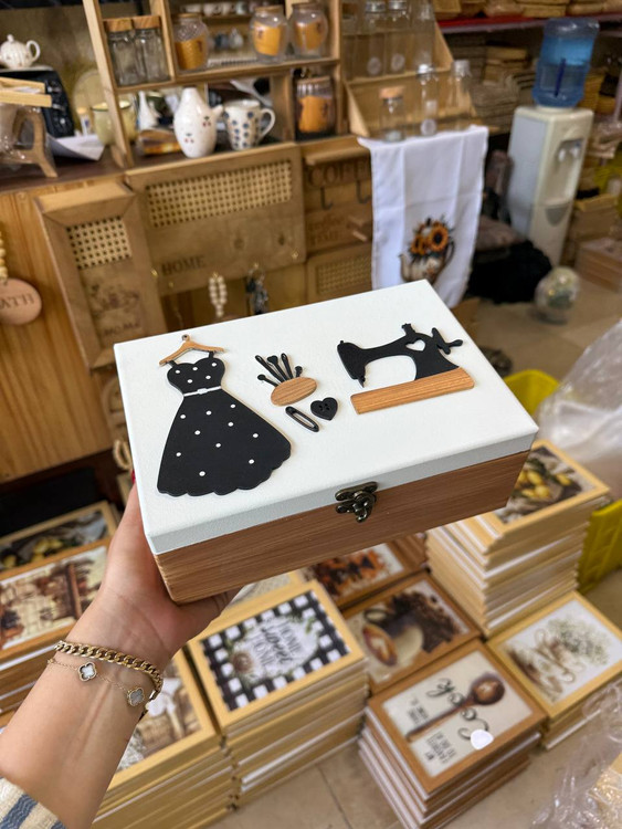 باکس نخ و سوزن،جعبه خیاطی،جعبه چوبی نخ و سوزن،لوازم خیاطی