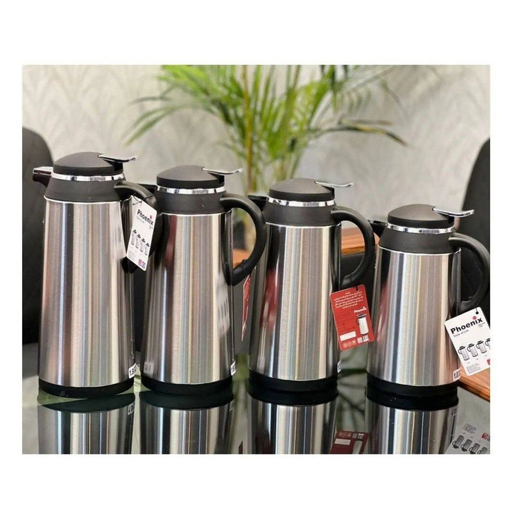 فلاسک استیل فونیکس Phoenix جزو با کیفیت ترین و محبوب ترین فلاسک های تولید داخل محسوب می گردد. استیل استفاده شده برای بدنه این فلاسک از مرغوبترین کیفیت (گرید 1) بوده که در اثر استفاده مداوم ، آفتاب و شستشو کدر یا لک نشده و دارای مقاومت فیزیکی بالایی است و شیشه استفاده شده داخل آن از وکیوم و بهترین نوع در بازار است. درب این فلاسک بصورت شاسی دار تهیه شده تا امکان استفاده از آن راحت تر باشد و پیچ تعبیه شده در زیر فلاسک امکان تعویض شیشه آن را به راحتی فراهم می آورد. کیفیت پلاستیک استفاده شده در قسمت درب و دسته بسیار باکیفیت بوده و حس خوشایندی در هنگام استفاده منتقل می نماید.