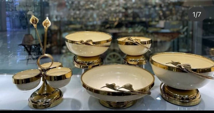 و اینکه رنگ سفارشی قابل اجراست یعنی میتونید گل و دور کار رو نقره ای سفارش بدین اگر اینجوری خواستین گزینه ی سفارشی رو بزنید و رنگ ظروف رو بهمون اعلام کنید