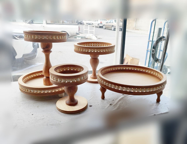 ست پذیرایی 4تکه مهره دار گرد ست پذیرایی چوبی گرد مهره دار ست پذیرایی عید ست پذیرایی چوبی