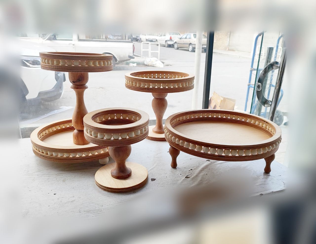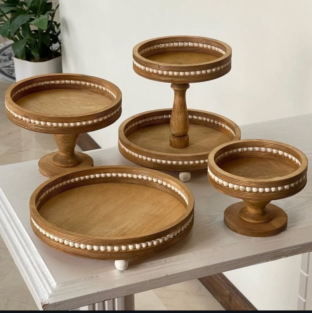 ست پذیرایی 4تکه مهره دار گرد ست پذیرایی چوبی گرد مهره دار ست پذیرایی عید ست پذیرایی چوبی