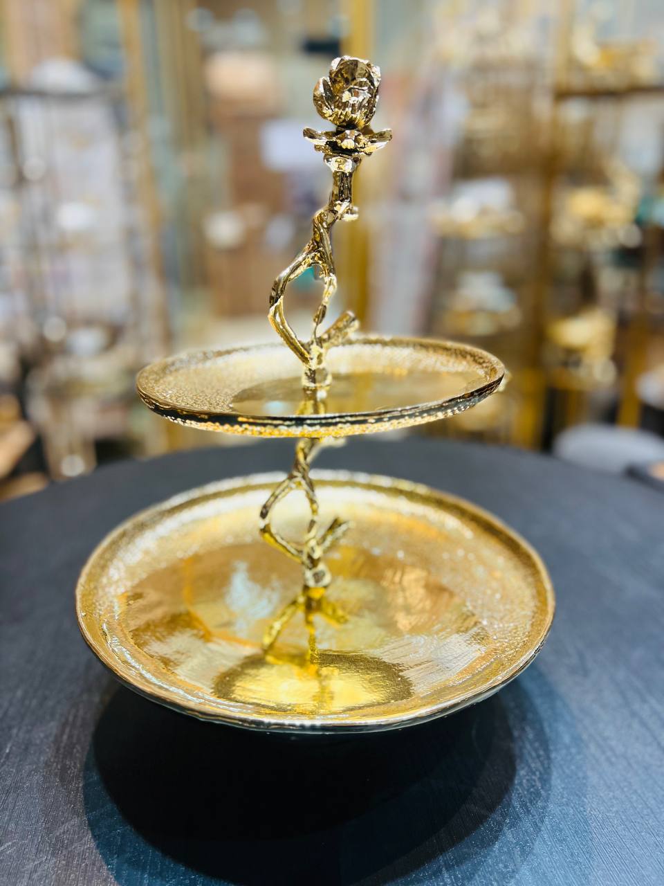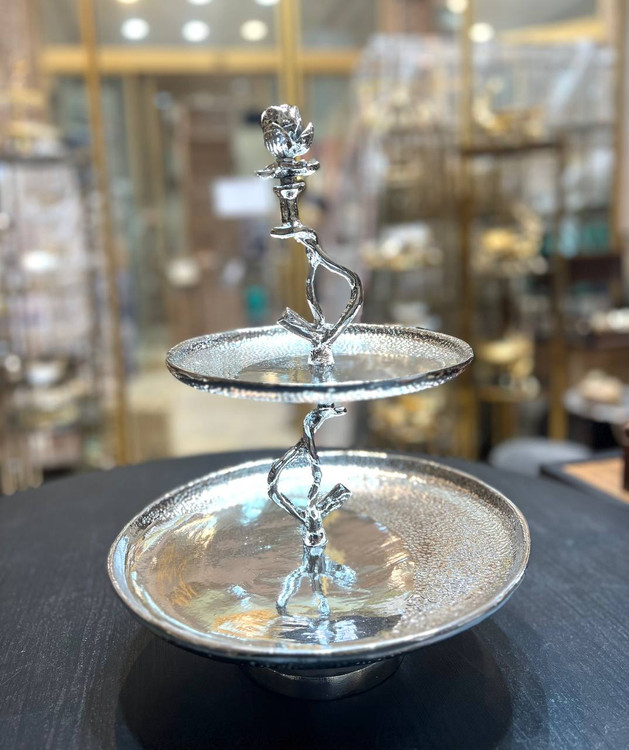 شیرینی خوری آلومینیومی دو طبقه آبکاری درجه یک طلایی و نقره ای