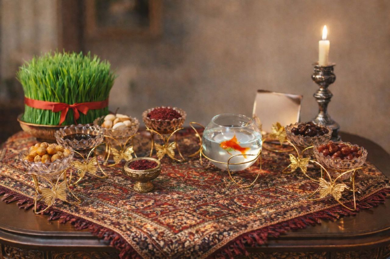 هفتسین پایه فلزی به همراه آینه و تنگ