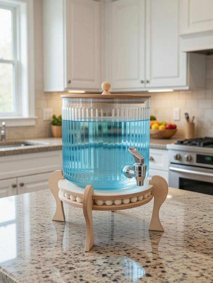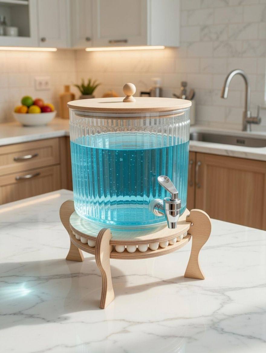 کلمن شیشه ای مهره دار کلمن شیشه ای پایه دار کلمن پذیرایی کلمن شربت خوری کلمن آب شیشه ای مهره دار پایه چوبی